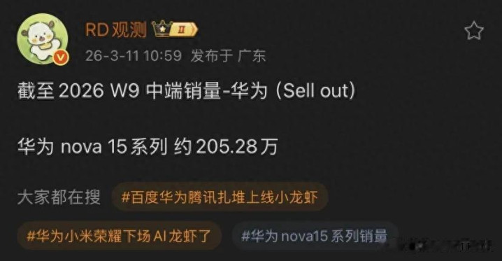 该爆料东谈主暗意,在 2026 年的第 9 周,Nova 15 系列销量已达 205.28 万台。舍弃现在,乐动(中国)app该系列月销量增长率为 3.03%,展望其所有人命周期内的销量有望高出 1000 万台。