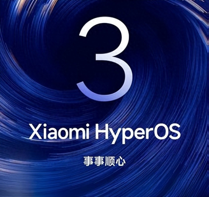 小米澎湃OS 3宣传图 :蓝色旋涡布景,显现“3”与Xiaomi HyperOS字样