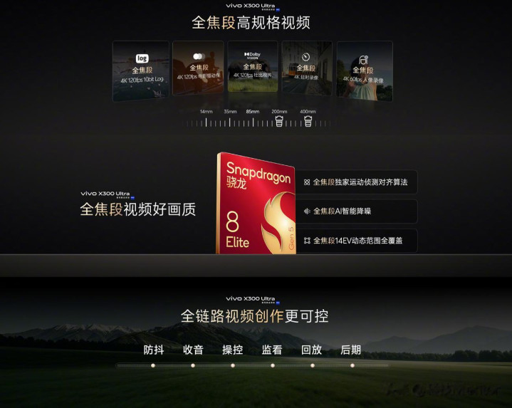 全焦段4K 120帧、10bit Log、杜比视界全给皆,径直能进后期经由。