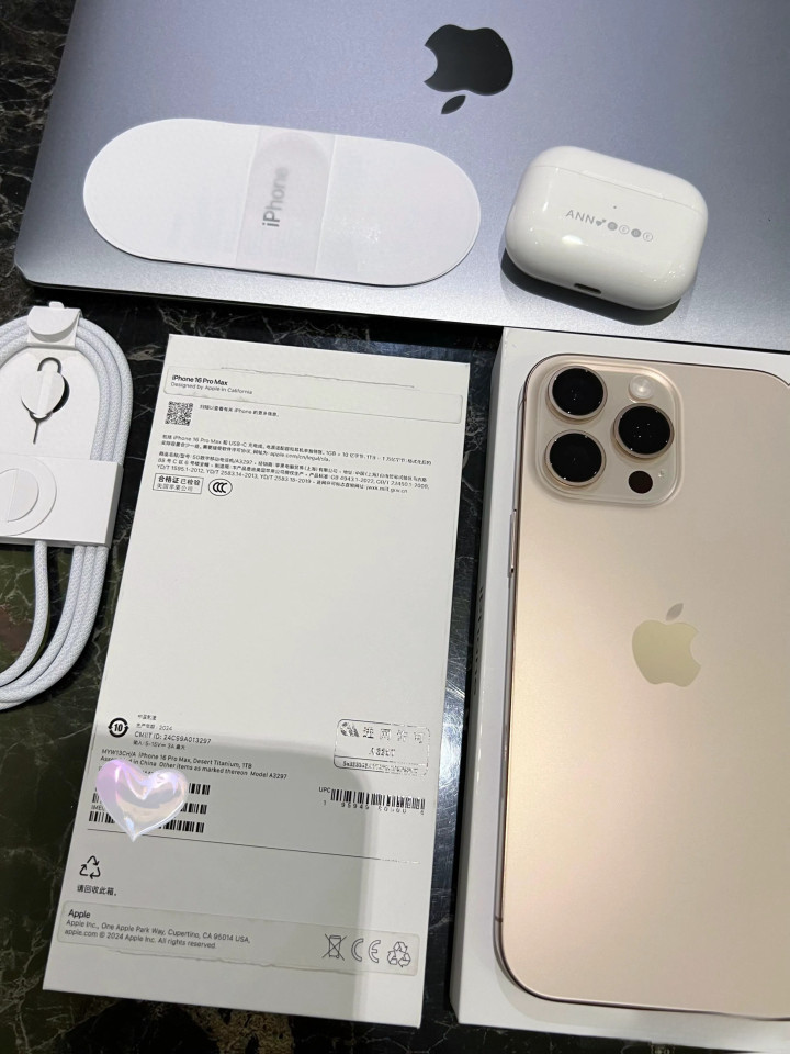 iPhone 16 Pro Max及配件 · 展示iPhone16ProMax包装盒、充电线等配件