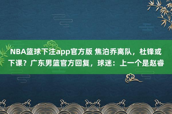 NBA篮球下注app官方版 焦泊乔离队,杜锋或下课?广东男篮官方回复,球迷:上一个是赵睿
