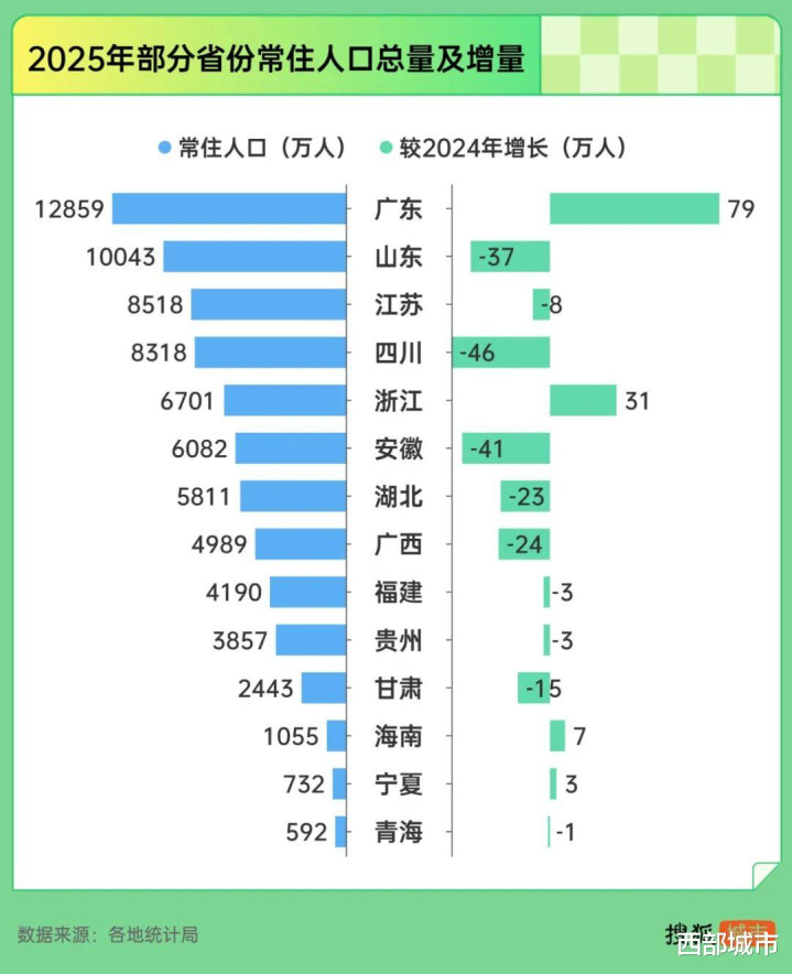 除了山东和江苏,福建2025年常住东说念主口在2023岁首次负增长后,也再次出现了负增长。