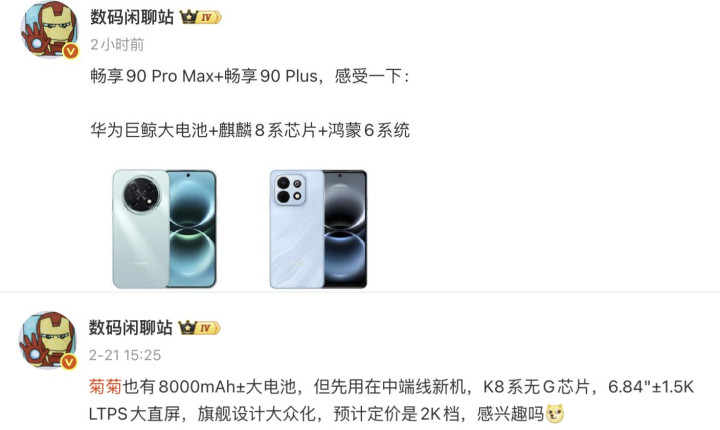 关于华为畅享90系列,亓纪的念念法是这么的:昨天共享周榜的时期,提到了2026年最看好的手机品牌是苹果和华为,看到今天官宣的两款新机,亓纪以为昨天的言论太正确了。从现在的情况来看,畅享系统就应该在售价上不息上探,用超长续航和麒麟芯片为中枢卖点,和华为Nova系列机型一齐知足更多中端用户的不同需求。