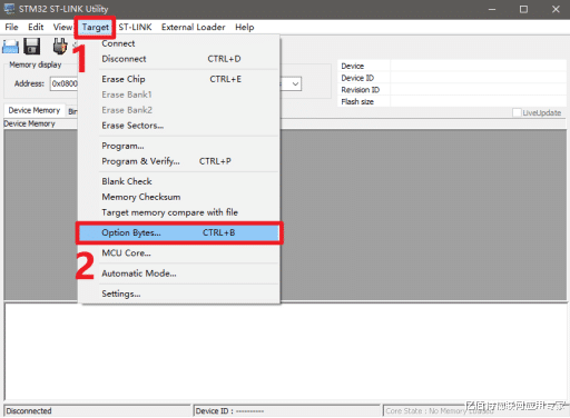 掀开 STM32 ST-LINK Utility 软件,按以下规则操作: