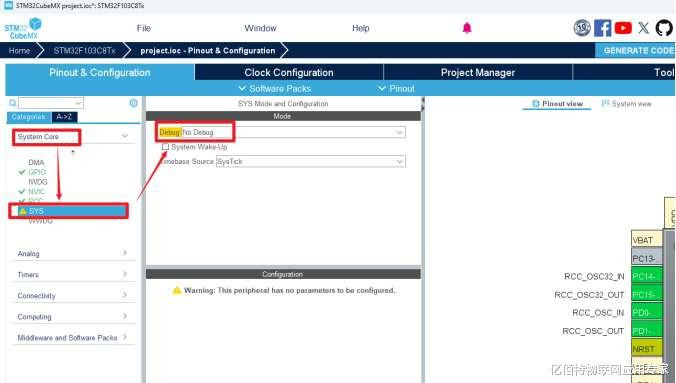 若是出现引脚因造作确立而无法烧录的情况,举例使用STM32CubeMX将烧录引脚的功能扎眼掉(如图3.1),导致无法二次烧录尺度,这时就需要使用强制硬件复位烧录。