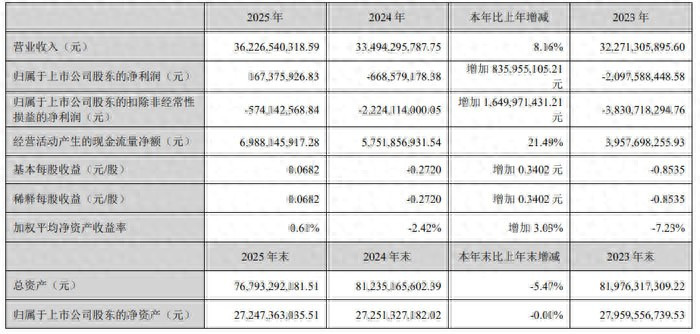 2026 年 3 月,天马微电子股份有限公司(股票简称:深天马 A,股票代码:000050)发布 2025 年年度阐明。阐显着示,公司全年完了买卖收入 362.27 亿元,同比增长 8.16%;包摄于上市公司股东的净利润 1.67 亿元,同比大幅增多 83.60 亿元,奏效完了功绩扭亏为盈;包摄于上市公司股东的扣除非频繁性损益的净利润为 - 5.74 亿元,同比增多 16.50 亿元,亏蚀幅度权臣收窄;基本每股收益 0.07 元。