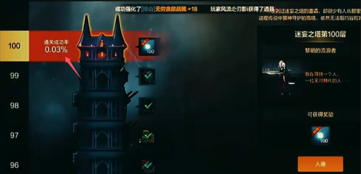 但比及一阵雨挑战100层迷惘之塔之后就被陶冶了,愣是刷了好几个小时皆没能通关。这让一阵雨皆懵了啊,没思到即使领有了龙武也不成秒通关这个100层,而是需要花本事磨掉boss的血量,因为boss的血条是确切太高了啊。再尝试了好几次之后,一阵雨终于是破耗了不少本事通关了这100层。