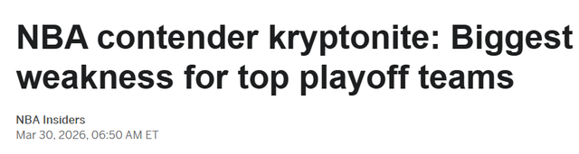ESPN分析了NBA总决赛十大热点球队各自的最大软肋——包括替补得分、三分投射等,拆解这些短板在季后赛潜入阶段可能形成的影响,并据此选出最能针对这些缺陷的敌手。
