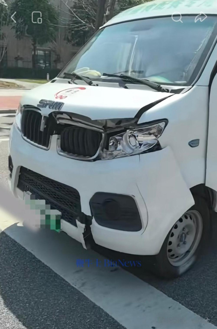 而位于中间“危机四伏”的白色货车,前脸格栅和引擎盖区域明显变形、翘起,前保障杠右侧禁闭下垂。车尾亦产生严重变形、凹下。