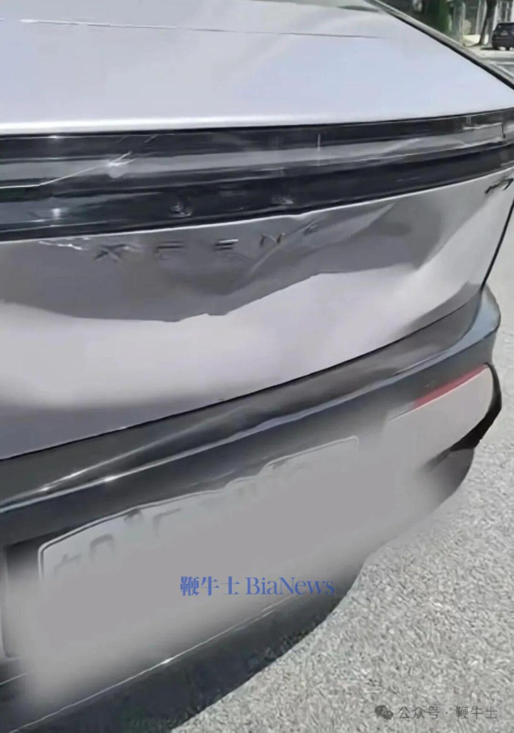 从车祸现场视频截图来看,篮球投注app车主驾驶的小鹏汽车遭到撞击后,车尾严重凹下。
