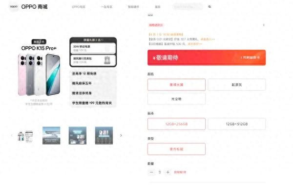 从OPPO官网公布的预约页面来看,OPPO K15 Pro系列这次在内存确立上作念出了斗胆的调整。该系列共提供两种存储组合,区别是12GB加256GB和12GB加512GB。不论是追求性价比的基础款用户,如故需要更大存储空间的重度使用者,齐只可取舍12GB的启动内存版块。这少许在收罗上激勉了无数数码爱好者的决策,许多东谈成见思为什么该系列莫得像之前的某些机型一样提供16GB以致更高容量的运存版块。