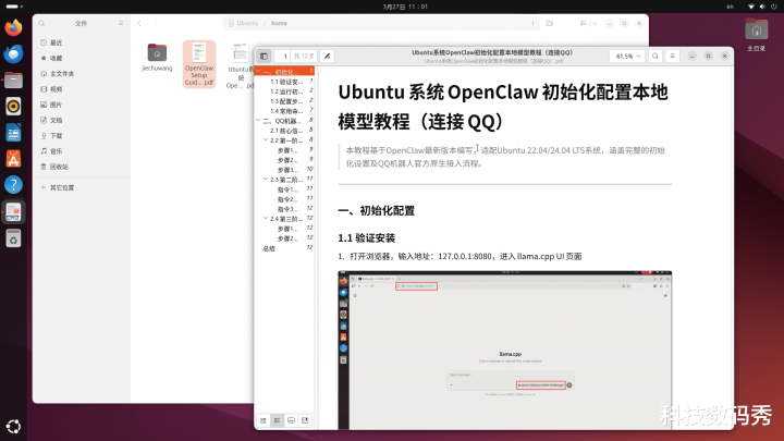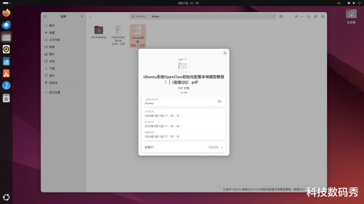 掀开左侧文献不停器,径直在地址栏输入:/home,即可看到两个PDF文献,辨别是英文版和中语版的《Ubuntu系统OpenClaw开动化树立腹地模子教程(谄媚QQ)》教程,其中枢敕令就两条:1.openclaw onboard --install-daemon,2.谄媚QQBot,你只需要按照上头写的遴荐哪一项就ok了。