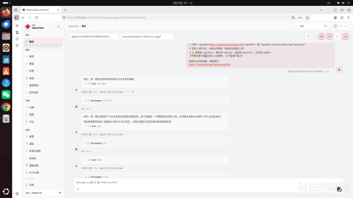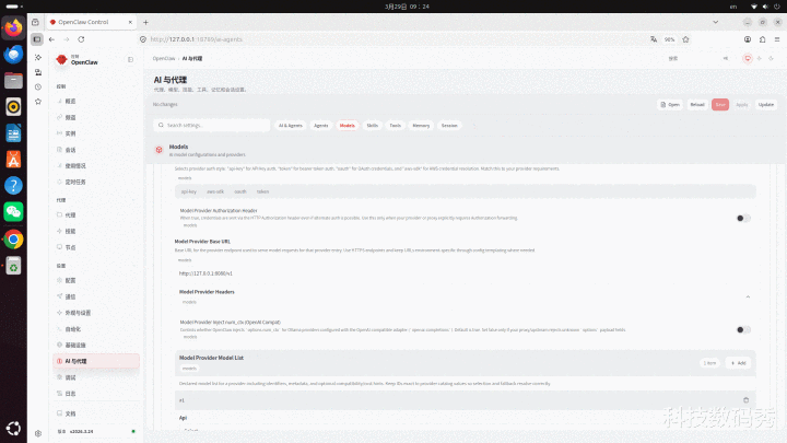解决的设施亦然有的,那等于不错在openclaw的截止面板中,左侧找到“AI与代理”,然后点击右侧的“Models”,拉到最底下进行手动添加腹地大模子,网址和称号依然是上头提到的,填写进去即可,不懂的方位径直不填,保存,然后回到聊天框AI模子里遴荐为腹地9B即可。