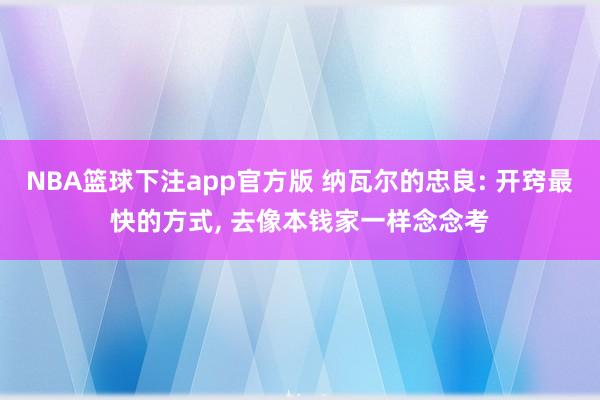 NBA篮球下注app官方版 纳瓦尔的忠良: 开窍最快的方式, 去像本钱家一样念念考