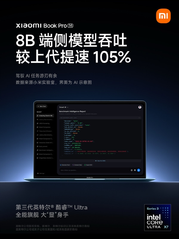 阐明官方公布的数据,小米札记本Pro 14 8B端侧模子隐约较上代提速105%,4K视频神奇遮罩提高45%。