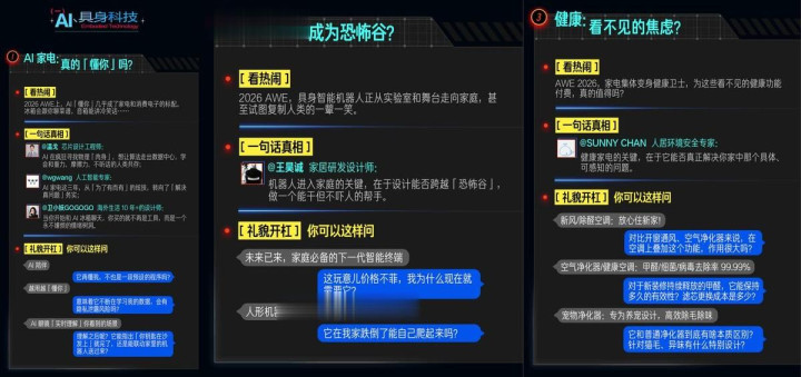 在知乎上,对于智能家电的征询极具想辨性和前锋性,彰显出知乎在家电领域内容上的专有价值。知乎答主西红柿炖番茄示意:“智能家电的终极打算不是炫技,而是无感劳动。比如能阐明天气自动调度口头的空调,能识别食材自动匹配烹调决策的厨电,这些才是确凿处理问题的编削。”而针对养宠家庭的除臭贫窭,答主云杉强调:“只吸毛不杀菌等于给细菌清场,本年AWE上看到的‘吸杀一体’本领,才算收拢了痛点。”
