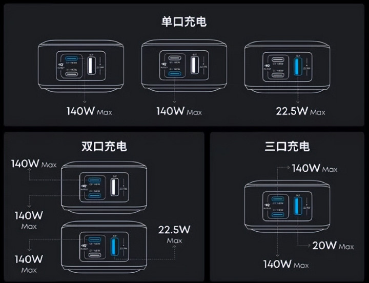 同期,双 USB-C 口的寂寥输出最高能达到 140W !
