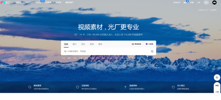光厂是国内跳跃的视频素材平台,特质是专科、商用授权明晰、价钱天真。
